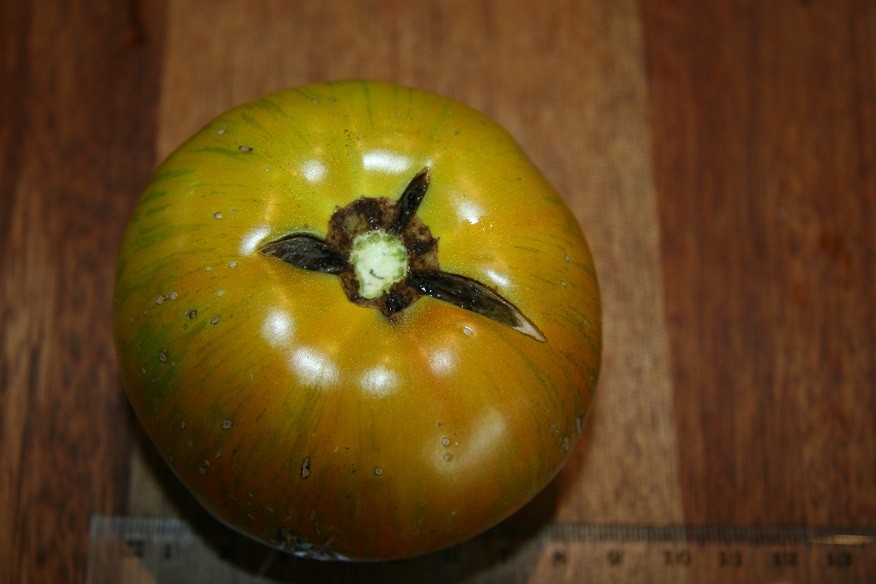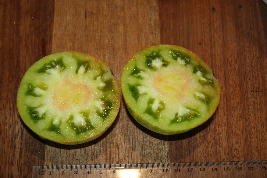 Here is a fruit off Trout Cod PL 1, one of half a dozen on the plant, most around this size (roughly 3 inches across) on a plant 500 mm tall. Flavour is down on what I had hoped for considerablely, but may grow a few next year to see what happens. Pale yellow-orange stripes over a GWR with faint pink colouring internally. Have kept seed and more than happy to donate if people what to use it as breeding stock for larger fruit on smaller growing plants