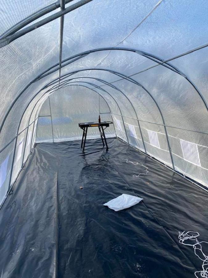 I've got 10x26 of protected space to play with. Some of it will be taken up by starts for the garden, and perhaps some for plant sales if I can manage that with my schedule. This cover won't last the season - but it's good enough to get started with while I plan out the re-cover for next season.